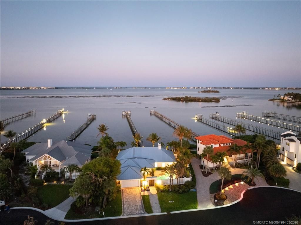 South Sewall's Point Waterfront Living at Its Finest Enjoy breathtaking wide water views and stunning sunrises from this custom-built courtyard pool home in one of Martin County's most desirable communities. Located on a quiet cul-de-sac with 120 feet of Intracoastal frontage, the home offers eastern exposure and refreshing southeast breezes-ideal for year-round outdoor living. Boaters will love the 400-foot dock with two lifts, accommodating multiple vessels with easy ocean access, plus a new seawall for lasting value. The triple-split layout features three ensuite bedrooms, formal dining, and a spacious eat-in kitchen. The courtyard design centers around a private pool for seamless indoor-outdoor living. Built for durability with concrete block construction, metal roof, and impact windows.