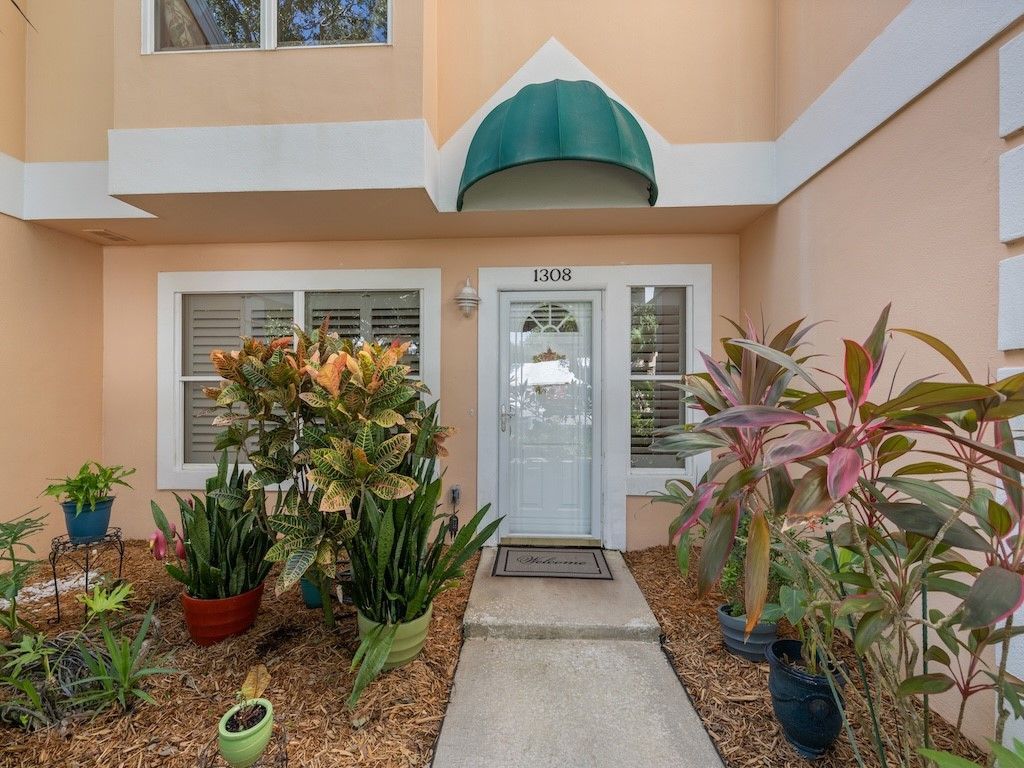 Your Tropical Hideaway Awaits... Absolutely delightful two-story townhouse tucked in a lush tropical oasis. Thoughtfully updated w/a new kitchen, renovated primary bath, plantation shutters, updated HVAC, 2019 water heater, w/ 2025 refrigerator. The cozy living room with fireplace and built-ins opens to a sunny patio and private garden?perfect for morning coffee or evening sunsets. Upstairs, the primary suite feels like a treehouse among the oaks and palms. Guest room offers a spacious closet/office nook. Enjoy a renovated clubhouse, pool, fitness, tennis, pickleball, & private beach access.