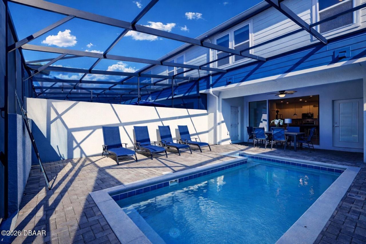 Priced to Sell!! Retreat to your own private paradise in this immaculate, light-filled townhome located in the heart of the highly coveted Windsor Island Resort. This premier gated community is packed with luxury resort style amenities for the perfect vacation including a Massive Resort Pool & Lazy River, Double Water Slides & Splash Pad, Poolside Restaurant & Covered Bar, Mini-Golf, Basketball, Volleyball, World-Class Clubhouse, Fitness Center, Game Room, and Fire Pit with views of the theme park fireworks! This turnkey residence comes fully furnished with tasteful decor and charming themed rooms making it a ''move-in ready'' vacation home and/or a high-performing investment property. Designed for modern living and effortless entertaining the open-concept first floor features a sleek kitchen with a large island, spacious dining area, and a bright living room all overlooking your private heated pool with a dedicated outdoor pool bath. Perfect after a long day at the theme parks or enjoy an evening swim. The ground floor also hosts a convenient guest bedroom and bath. Upstairs, you'll find a bonus den for family movie nights, alongside multiple beautifully themed bedrooms that capture the magic of Central Florida. The HOA provides basic internet, cable, lawn care, and daily trash pickup. Located just minutes from Walt Disney World, this home offers the ultimate blend of location and lifestyle. Don't miss out on one of the best priced townhomes at Windsor Island Resort. Call today to schedule your private showing! All sizes approximate. All information deemed accurate but not guaranteed.