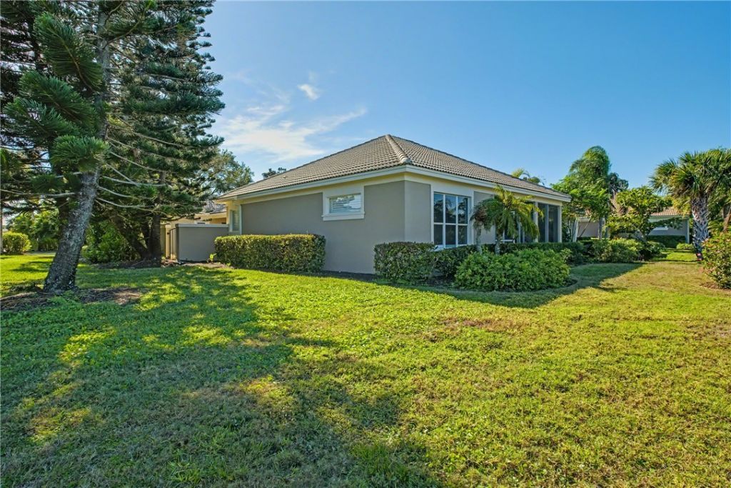 Private waterfront courtyard home in The Falls at Grand Harbor, Vero Beach. Main residence offers 2BR/2BA split plan with spacious living/dining opening to screened lanai with serene water views. Separate cabana suite (1BR/1BA) off the paver courtyard?ideal guest retreat or office. 2,489 sq ft (3,714 total). Move-in ready: new A/C 2025, fresh interior/exterior paint, cleaned carpets, pressure-washed roof. 2-car garage. Minutes to beaches, shopping & dining.