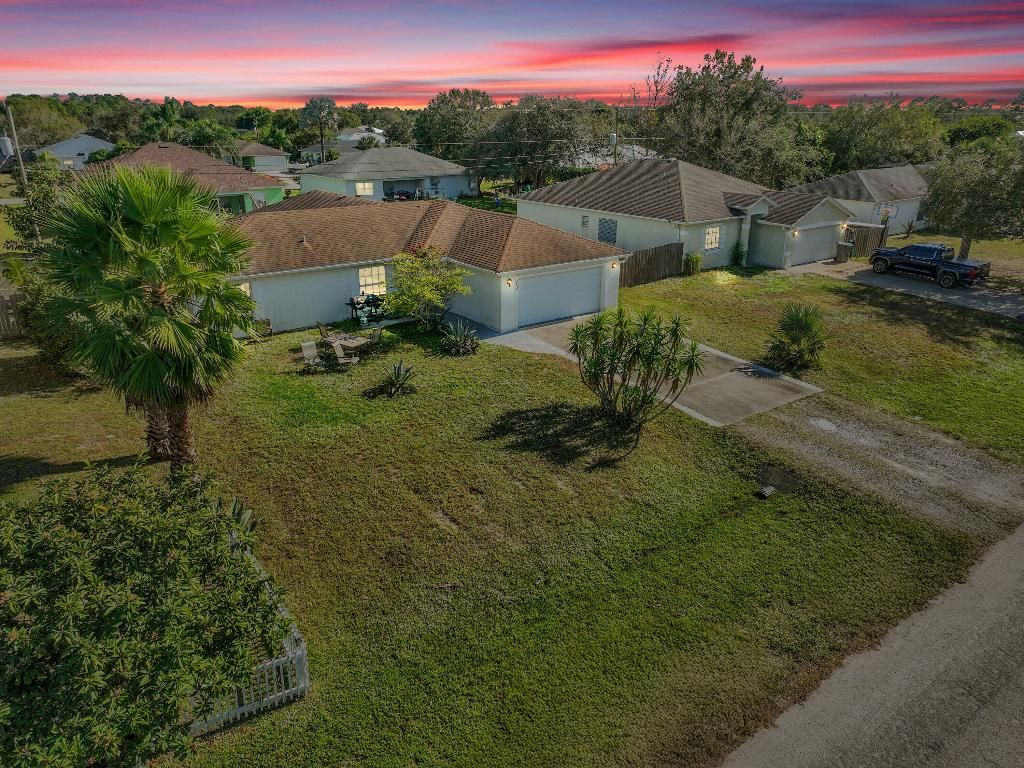 Welcome to this charming 3-bedroom, 2.5-bath split-plan home in desirable Vero Lake Estates. This home is minutes away from beaches, dining, and riverfront attractions. Major updates include a brand new roof and newly installed fence, offering immediate value, improved insurability, and long-term peace of mind. Inside, enjoy vaulted ceilings, tile flooring throughout, and a kitchen ideal for entertaining. The expanded family room opens to a screened lanai with an outdoor bath, perfect for indoor-outdoor living. The spacious primary suite features dual walk-in closets. Formal living and dining rooms plus a laundry room with sink complete the home.