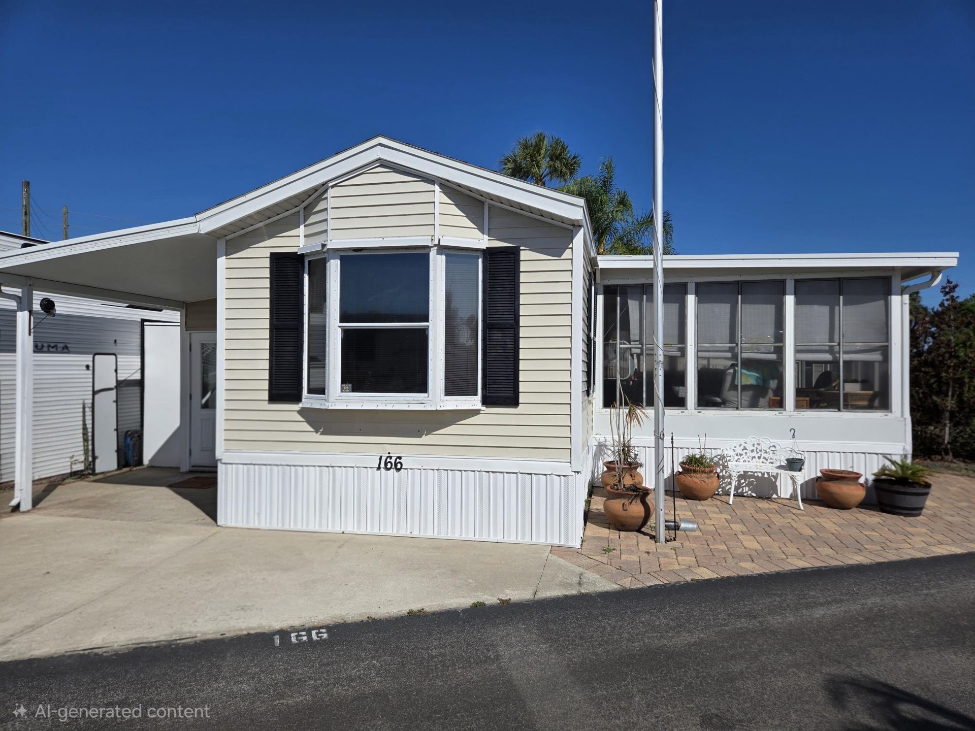BIG O RV-Charming 2-Bdrm Park Model-Perfect Seasonal Getaway! Discover this cozy, furnished, move-in-ready 1993 Park Model with 760 sf under air and 3,100 total sf; situated on 2 lots! Features include laminate wood flooring, ceiling fans, spacious kitchen w/pantry & coffee bar, sliding glass doors, bay window, lots of natural sun light, and indoor laundry room w/storage. The 12x14 Florida Room provides additional living space. This double lot features concrete pavers, allowing for plenty of space for boat & golf cart parking. The 8x8 shed is perfect for storage. Nestled in this active, amenity-rich, gated 55+ community; enjoy access to a clubhouse, pool, shuffleboard, bocce ball, recreation facilities, boating and more; perfect for the active adult lifestyle!